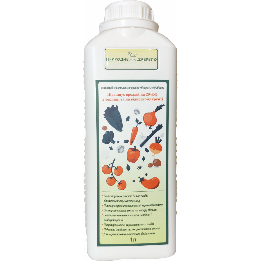 Природне Джерело – це сучасне органо-мінеральне добриво, створене для активного росту, підвищення врожайності та покращення смакових якостей овочів, зелені, ягід та зернових культур.