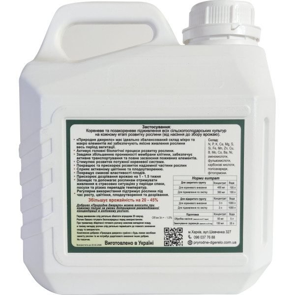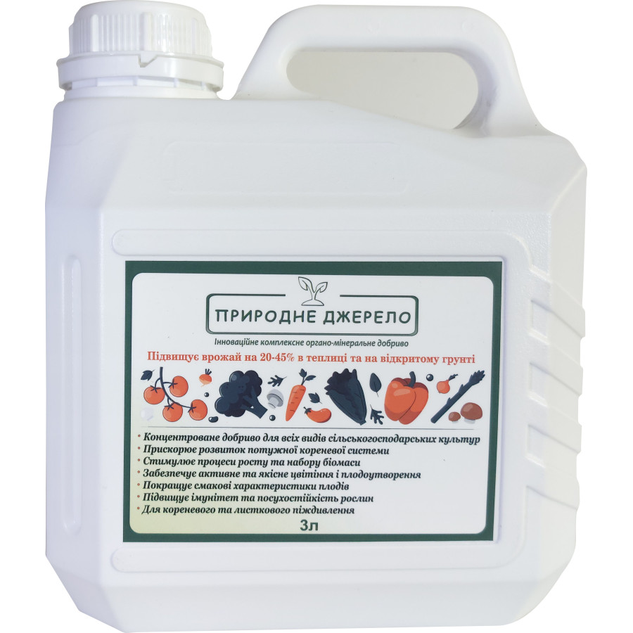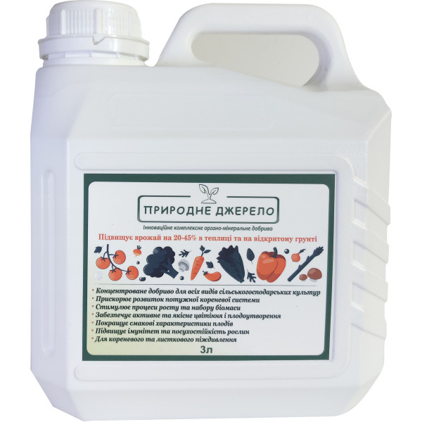 Природне Джерело – це сучасне органо-мінеральне добриво, створене для активного росту, підвищення врожайності та покращення смакових якостей овочів, зелені, ягід та зернових культур.